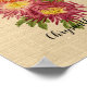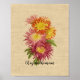 Vintage botanische Illustration mit einem Bouquet aus rosa und orangefarbenem Chrysanthemum auf dem Hintergrund der Beinschlitz-Optik mit modernem Skripttextualüberlagern