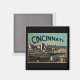 Dieses beeindruckende, moderne Vintage-Bild von Cincinnati, Ohio zeigt ein riesiges Stadtbild von Wolkenkratzern und Gebäude, in dem der Ohio-Fluss durchbläst.