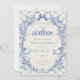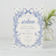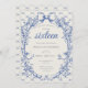Dieses Bild ist eine wunderschön gestaltete Vintage Geburtstagsveranstaltung mit eleganten, handgezeichnet Blumen- und Bogen-Illustrationen in sanftem Blau auf cremefarbenem Hintergrund. Der zentrale Rahmen ist eine verzierte ovale Garage mit Wildblumen und Blätter, überdacht und mit bezaubernden Bögen versehen, die dem Design eine delikate, klassische Ästhetik verleiht, die an antike französische Schreibwaren- oder Spielzeugmuster erinnert. Das Besondere ist die Mischung aus Vintager Eleganz und gefühlvoller Wärme. Es ist mehr als nur eine Einladung - es Set den Ton für eine liebevoll geplante Feier, die Tee-Party, weiche Pastells, heitere Kleider und herzliche Erinnerungen beim Herstellen andeutet.