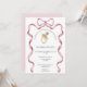 Vintage elegante Coquette Pink Ribbon Bow Baby Girl Babydusche Einladung