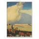 Open Range (1942) von Maynard Dixon ist ein Vintages amerikanisches Kunstlandschaftsgemälde. Ein Cowboyrancher reitet sein Pferd auf den Ebenen des Südwestens. Er beherbergt seine Kühe, Bullen und Rinder auf der Prärie. Große weiße Wolken füllen den Himmel über den offenen Feldern und den Mesas. Über den Künstler: Maynard Dixon (1875-1946) war ein bekannter amerikanischer Künstler, dessen Werk sich auf den amerikanischen Wilden Westen konzentrierte. Im Jahr 1900 besuchte Dixon Arizona und New Mexico.
