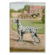 Vintage Grafik durch Edwin Megargee stellt einen schönen Dalmatinerhund dar, der in der breiten Kreisfahrstraße eines Anwesens stehend ist. Die Pferde, die zu einem Wagen hitched sind, sind warteten in den Hintergrund. Der amerikanische Künstler, der Etcher und der Illustrator, Edwin Megargee (1883-1958) waren für seine Porträts und Illustrationen der Tiere am bekanntesten. Ein profunder Tierliebhaber, Megargee bemühte sich, die Anatomie und die skelettartige Struktur der Tiere und der Vögel zu studieren, um in der Lage zu sein, sie genau zu malen, während sie mit genauer Aufmerksamkeit zum Detail erscheinen. Er wuchs in Philadelphia auf, und bis er ein Jugendlicher war, hatte er seinen Vater überzeugt, dass er eine Karriere von seiner Grafik machen könnte. Als Erwachsener züchtete er und malte Gewehrhunde. Er war auf dem Verwaltungsrat des amerikanische Hundehütten-Vereins und illustriert verfolgen mehrere Wörterbücher. Das laufende Windhundhundelogo des Windhund-Busunternehmens wurde durch Megargee entworfen. Diese Karte ist leeres Innere für Ihre eigene Mitteilung.