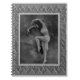 Das Wendelheft ist mit einem Vintagen Schwarz-Weiß-Foto eines exotischen Art-Déco-Tänzers, Kyra genannt, ausgestattet. Das Foto stammt aus einer großen Schachtel alter Bilder aus unserem Dachgeschoss. Das ist von der Großmutter meines Mannes. Die Grenze ist meine handgefertigten Fliesen, die digital bearbeitet werden.