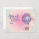 Niedlich Vintag Dankeschön an die Nachricht mit einem blühenden lila Heißluftballon auf rosa Hintergrund.
