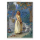 Vintage Grafik durch Harold-Anstarren (1885-1962) eine reizende junge blonde Frau in einem gelben Kleid darstellend stehend auf einem Gartenweg nahe einem Strom. Ein Engel, der über ihrer Schulter schwebt, flüstert in ihrem Ohr, und die Gesichter der Feen können gesehenes Spähen heraus von ihren Verstecken sein. Harold-Anstarren war ein Illustrator und ein Autor, die in Neuseeland geboren sind, das Kunst in London studierte, und auch gewohnt während einer Zeit in Australien und in Pasadena, Kalifornien. Er wurde "den Blasen-Mann" angerufen, weil er häufig Blasen in den Illustrationen für die Bücher der Kinder einschloss. Karte ist leeres Innere für Ihre eigene Mitteilung.