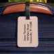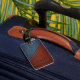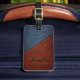 Klassisch und zeitlos, das Design von Denim und Leder. Der Name auf der Vorderseite hat das Aussehen, in das Leder geprägt zu sein. Mit diesem eleganten Anhänger verlieren Sie Ihr Gepäck nicht. Die Rückseite ist mit anpassbarem Text für weitere Identifikation versehen.