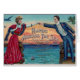 Diese bunte Vintage Illustration ist von der Blattmusik für einen MilitärMärz wahrscheinlich, der "Hände über dem Meer betitelt wird", das von John Philip Sousa im Jahre 1899 verfasst wird. Die Paare stehen auf gegenüberliegenden Docks mit dem Meer zwischen ihnen und erreichen herüber, um Hände zu halten. Es gibt Drosseln über ihrem Kopf und einem Kleeblatt über seinem, mit Segelbooten im Wasser und in einem Sonnenuntergang auf dem Horizont. Dieses würde eine nette zu senden sein jemand Karte, das Gatte dient übersee im Militär ist. Karte ist leeres Innere für Ihre handgeschriebene Mitteilung.