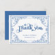 Eine raffinierte Dankekarte mit einer Vintagen, staubblauen Farbpalette und einem verzierten antiken Rahmen - eine wunderschön klassische Art, Ihre Herzlichkeit mit Eleganz zu teilen.