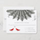 Graue Noten Rot Gesang Lovebirds Elegante Rot und Gray Vintag Love Birds Hochzeiten Einladungen. Große Gatsby Roaring 20er Art Deco Art Nouveau Themes oder Vintag Red Bird Monogram auf Back with Grey Feather Fan Wedding RSVP Response Card Einladungen. Vintage Liebesvögel Hochzeitseinladungen