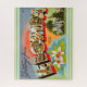 Eine farbenfrohe Retro-Postkarte, die vom Staat Floridas begrüßt wird.