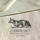 Diese "Fox" Gummi Briefmarke hat einen Vintagen Fuchs, Familienname und Adresse.