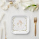 Die Babyduschplatte ist mit einer niedlichen Gans und ihrer Mama gestaltet und mit einem skurrilen Aquarellrahmen mit rosa Blumenelementen gestaltet.