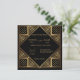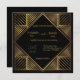 Atemberaubenden 20er Jahre und Gatsby Besuch Hochzeit Einladung. Vorgestellt mit schwarzem Hintergrund und goldenen Details. Personalisiert mit Hochzeitsinformationen auf der Vorderseite und den Initialen der Braut & Bräutigam auf der Rückseite. Augenfrische und elegant. Diese Einladung Set die Bühne für eine Hochzeit, die sowohl originell als auch unvergesslich sein wird!