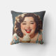Vintag glückliche Frau isst Eiscreme-Kissen Kissen