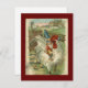Vintag Gnome Rides Rooster Fantasy Holiday Card.
