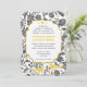 Vintag-Graue-Gelbe-Blütenvogel Hochzeit Einladung