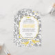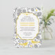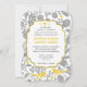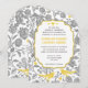 Vintag-Graue-Gelbe-Blütenvogel Hochzeit Einladung