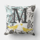 Vintag-Graugelbe Lovebird-Bläsermonogramm Kissen