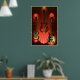Dieses Poster ist die Künstlerversion von drei Vintagen Gitarren aus den sechziger Jahren, die auf einem roten Sonnenbursthintergrund digital dargestellt werden.