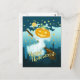 Dieses niedliche Gespenst ist ein Bild aus Vintagen Halloween-Karten und hat einen Kürbiskopf und reitet mit dem Text "Happy Halloween" einen Besen am Nachthimmel.