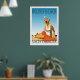 Holden Ein Retro-Poster, das bis jetzt noch nie war. Ein kreatives Redo eines alten Posters, das hätte sein sollen. Holden Beach, North Carolina im Retro-Stil aus der Zeit des Dekos. Helle Farben mit einer Frau am Strand unter einem blauen Himmel.