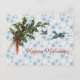 Individuell gestaltbare Weihnachtspostkarte mit einem Vintagen zeichn eines heiligen Astes und zwei Schildkrötentauben.
