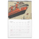 Vintager Illustrationskalender mit einer Vielzahl von Dampfpunk-Stadtszenen aus der Zukunft, futuristischen Autos und anderen Flugmaschinen, Menschen, etc.
