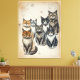 Dieses charmante Katzenportrait im Vintagen Stil zeichnet sich durch eine wunderschön illustrierte Gruppe von Katzen aus, die in perfekter Harmonie zusammensitzen. Dieses Kunstwerk vereint klassische Eleganz mit einem inspirierten Hintergrund und reizvollen Blumendetails. Jede Katze ist einzigartig gezeichnet und zeigt eine Vielzahl von Rassen und Ausdrücken, was sie perfekt für Katzenliebhaber, Vintage Kunstliebhaber und gemütliche Wohngestaltung macht.