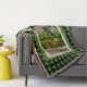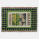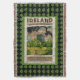 Eine schöne Decke mit einem Vintagen irischen Reiseplakat, das auf einem gemusterten Hintergrund angeordnet ist. Geeignet für alle Arten von Wohngestaltung oder nehmen Sie es mit auf Ihrer nächsten Reise zur Smaragddinsel.