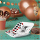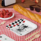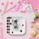 Vintage Jester Lady mit einem roten und schwarzen Harlequin-Muster.
