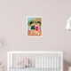 Junge Schulkinder laufen auf einem Gartenweg, während die Blätter um sie herumfallen. Junge hält ein Pinrad, Mädchen hält einen Lollipop. Ideal für die Rückkehr in die Schule oder für ein Kinderzimmer. Niedliches Retro kawaii skurrile niedliche Design aus einer alten Anzeige aus Japan, aus Oriental Tea Garden.