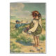 Eine Vintage Illustration von Clara M. Burd zeigt ein Junge und ein Mädchen am Meer. Sie steht im Sand, eine Distanz vom Wasser entfernt, und ihre Hand schattet ihre Augen, während sie beobachtet, wie der Junge auf den Wasserrand zugeht. Er ist in einem Seemann-Anzug und schaut auf sie zurück. Er trägt ein Angelnetz auf einem Pol. Auf dem Meer befindet sich ein Segelboot direkt vor der Küste. Der amerikanische Künstler Clara M. Burd (1873-1933) war in New York geboren und studierte Kunst in New York und später in Paris. Sie ist am besten für ihre Illustrationen für Kinderbücher bekannt, aber auch illustriert für Zeitschriftenabdeckungen, entwarf Buntglas und Wandmalereien für Kirchen und malte Kinderporträts und Szenen aus historischen Epochen. Diese Karte ist leer für Ihre eigene Botschaft.