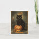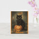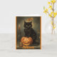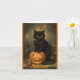 Auf dieser Halloween-Grußkarte ist ein Vintages Bild eines niedlichen, schwarzen Kätzchens, das auf einem lächelnden Kürbis und einer Kerze im Hintergrund ruht. An der Kartenvorderseite steht "Halloween", und auf der Innenseite steht: "Ist hier, Zeit für Trick oder Leckereien! Aber keine Angst, denn ich wünsche dir ein sehr glückliches Halloween, mein lieber!" Eine niedliche Karte, um Familie und Freunde zu schicken, vor allem Kinder zu Halloween!