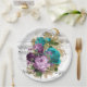 Ein elegantes Vintages Design lila und aquamariner Blume auf musikalischem Hintergrund. Ideal für Nachmittagstee oder Brunch.