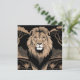 Vintages Löwenportrait, dieses Design bietet eine Vintage Abbildung eines Porträts eines Löwen mit einem ruhigen und überragenden Aussehen. Der Hintergrund ist eine schwarz-weiße Safari-Landschaft mit Bäumen und Bergen. Das Gesamtbild hat einen Art Deko Stil.