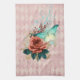 Das Küchentuch verfügt über eine "glühende" aquamarine und Elfenbeinküche mit Vintagem Blumenstrauß auf einem hartlastigen rosa Harlequin-Muster-Hintergrund