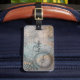 Vintage Karte mit Kompass-Monogramm-Design auf grunblauem, goldenem und aquamarinem Hintergrund. Wenn Sie ein Liebhaber alter, Vintager Weltkarten sind, dann ist dieses Design für Sie. Geben Sie Ihrem Gepäck ein Etikett, das Ihren Wunsch widerspiegelt, an ausländische Küsten zu reisen. Fügen Sie Ihr Monogramm und Ihren Namen, Ihre Adresse und Ihre Kontaktdaten hinzu, um es einzigartig zu machen.