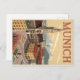 Erleben Sie den Charme Deutschlands mit dieser klassischen Postkarte von München! Der Marienplatz mit dem neuen Rathaus und der atemberaubenden Alpenkulisse. Die verblassten warmen Farbtöne und das feine Korn verstärken den Vintagen grafischen Stil mit einer kühnen Münchner Schrift im Stil der 60er Jahre.