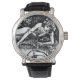Uhr, Klassische Damenuhr mit schwarzen Lederarmband
