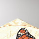© Lisa Audit / Wild Apple. Ein Vintage-Bild eines Orangenschmetterlings. Das Bild ist von bunten Druckgrafiken umgeben, die den Schmetterling in einem weißen Kreis enthalten. Es gibt auch Text, der im Bild zu sehen ist.