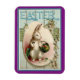 Auf diesem Magneten steht ein Vintages Bild eines Hasen mit einem Regenschirm und einem Korb voller Gemüse, mit dem Wort "Ostern" über dem Hasen. Nutzen Sie diesen Magneten für die Frühlings- und Osterdekoration oder geben Sie als Geschenk!