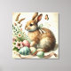 Vintages Osterhasen mit Blume und einer Leinwand aus Eiern. Ideal für Osterdekor.