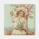 Dieser niedliche Magnet zeichnet sich durch ein altes Bild eines jungen Mädchens aus, das einen Osterkorb und ein Baby-Küken hält.