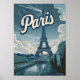 Erleben Sie die Romantik und Eleganz der Stadt der Lichter mit diesem Vintagen Pariser Reiseplakat, einem atemberaubenden Tribut an eine der weltberühmtesten Sehenswürdigkeiten. Die Abbildung zeigt den Eiffelturm, der in einem traumhaften Blau gebadet wurde und den Zauber der Dämmerung über der Pariser Skyline weckt. Weiche Gradienten und subtile Texturen verstärken die Vintage Ästhetik und schaffen ein Gefühl von Nostalgie und Abenteuer. Oben wird das Wort "Paris" in einem stilvollen Retro-Schriftart dargestellt, der an klassische europäische Reisewerbung erinnert. Die Kombination aus zeitloser Architektur und Vintagem Design macht dieses Stück zu einem auffallenden Herzstück für jeden Raum. Dieses 20"x28"-Poster, das auf hochwertigem Papier gedruckt wurde, eignet sich perfekt für Frankophile, Reisende oder alle, die eine Touch Pariser Charmes in ihre Zuhause oder ihr Büro bringen möchten. Egal ob Sie einen Spaziergang entlang der Seine oder einen Kaffee in einem Straßencafé genießen möchten, dieses Poster bringt Sie mit nur einem Blick ins Herz von Paris.