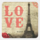 Vintages Eiffelturmbild in Paris, Frankreich. Im Hintergrund verblasst ein alter Buchstabe der französischen Liebe.