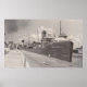 BLACK & WHITE POSTER entworfen aus einem VINTAGEN FOTO BILD DER PERCIVAL ROBERTS JR Bootsfahrt in der SAULT STE. MARIE LOCKS. Wunderschönes diagonales Kompositionsbild dieses Erzfrachters, das die schiere Größe & Länge aus der Perspektive gibt!