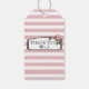 Ein wunderschöner Gast aus Vintagem Brautparty, der ein Geschenk-Tag bevorzugt. Personalisiert mit dem Namen und dem Datum der Braut. "Hier kommt die Braut". "Die Zukunft feiern Frau." Passen Sie die Farbe der rosa und weißen Streifen an. Romantische Vintage Rose machen dieses elegante Geschenkschild modern und elegant zugleich. Passen Sie Ihre Hochzeit Dankeschön Geschenke mit diesem kleinen bunting Fahne geformt Tag. Weitere Hochzeitsprodukte finden Sie unter "The Hungarican Princess - A Boutique" unter zazzle.com/hungaricanprincess. Glückwünsche.