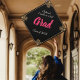 Vintager, goldfarbener Blumenrahmen mit rosa weißer und goldener Quinceañera Birthday Cake Card, diese Version hat einen immer eleganten schwarzen Hintergrund hinter dem Kuchen. Personalisieren und personalisieren Sie das Innere mit einer persönlichen Nachricht, Gruß und Namen. Fröhlich zum Geburtstag, Mädchen.