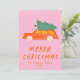 Wenn Sie eine einzigartige und schöne leicht bearbeitbare Weihnachtskarte suchen. Dieser ist perfekt für dich. Und wie Sie sehen, ist das Design mit einem handgefertigten und gezeichnet roten LKW ausgestattet. Mit einer roten Hand schriftliche Kalligraphie von MERRY CHRISTMAS. Und ein Gruß Absatz im Hintergrund, zusammen mit einem anpassbaren Foto und Vintagen Ornamenten. Alles Auf fett und hell rosa Hintergrund.
