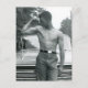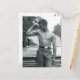 Diese sexy Postkarte zeigt ein Vintages Foto eines heiß-shirrilosen jungen Mannes, der seine Muskeln für die Kamera zeigt.